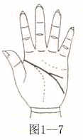 智慧线一支线消失在火星丘,另一支线下达月丘,具双重性格,想象丰富,工作能力强、温顺大胆,敏感且冷静,意志坚强(图1-7)