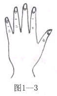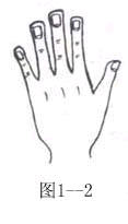 这种手又长又大,肌肉薄,指骨头较突出,指关节粗大而发达,五指并拢时,指头间的缝隙特别显眼,手背上静脉清晰映出。手指同时有尖头型与圆锥型的特征(图1--4)。
